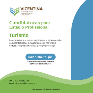 TURISMO - Terá oportunidade de desenvolver e organizar eventos no ramo da sustentabilidade, Turismo de Natureza, Acessível e valorização do Património Cultural.